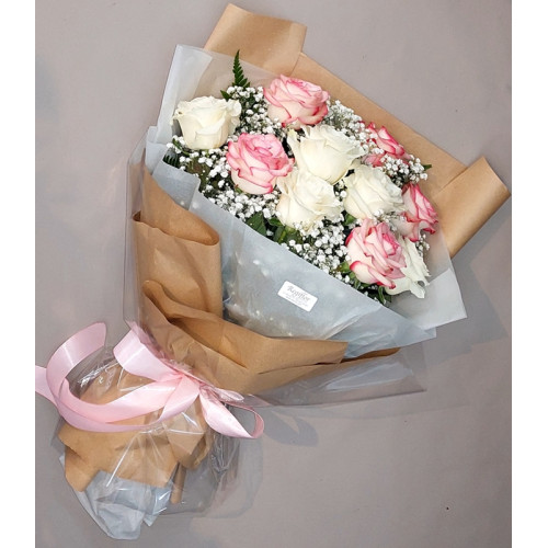 Bouquet de 10 Rosas (5 brancas e 5 rosa)